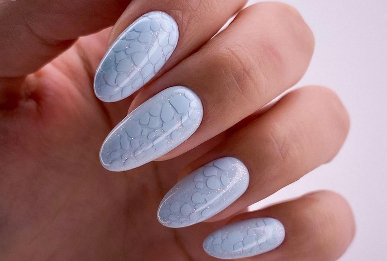 Пенный маникюр в трендовых летних цветах (голубой, розовый, белый, бежевый) будет отличным дизайном для ноготков в 2020 году. Делается пенный маникюр с помощью самой обычной пены (шампунь, мыло). Сначала наносится лак, потом топ, все сушится, а в конце еще раз тонким слоем наносится топ и на него наносится пена, потом топ вместе с пенной отправляется в сушку. Остатки забираются с помощью салфетки.