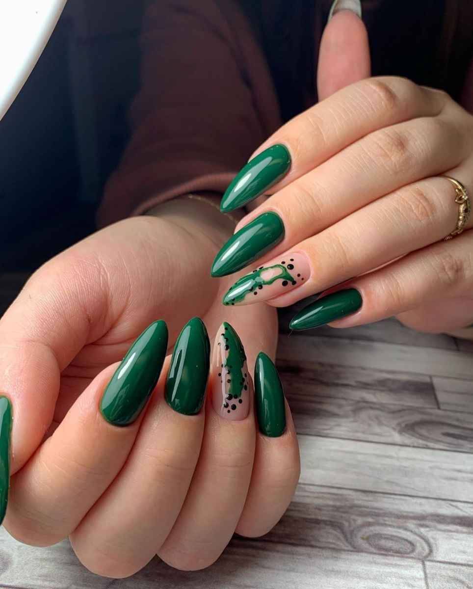 Среди самых модных цветов весны в маникюре сложно выделить один. Но у матового зеленого есть шанс на лидерство. Он достаточно благородный, может иметь оттенок сочной травы или лесного мха, напоминать кожицу зреющего винограда или шкуру игуаны