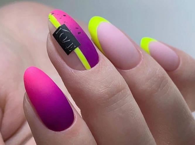 Ногти лето 2022 могут быть покрыты самыми разными и необычными цветами. Это интересное решение, которое добавит образу нотку оригинальности. Маникюр может получить поистине уникальным, поскольку несочетаемые цвета часто создают интересную композицию. При желании, можно добавить акцент на один или два пальца.