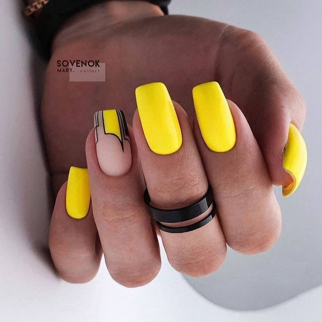 Этот цвет ассоциируется с радостью, теплом и солнцем. Это то, что нужно летом. Маникюр в желтых тонах — отличный вариант, чтобы сделать свои летние дни еще ярче и красочнее. Его большим преимуществом является то, что он удивительно универсален и станет идеальным выбором для вашего образа.