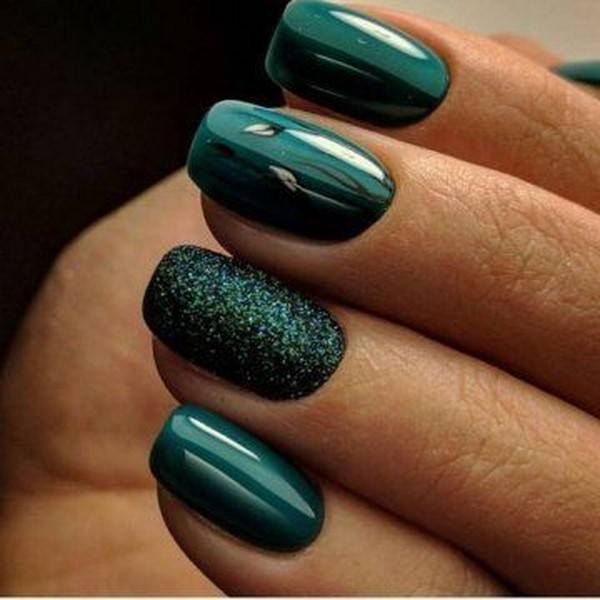Популярна не только для длинных, но также и для коротких ногтей. Модные тенденции на следующий год предполагают использование втирки в качестве акцента на нескольких ногтях. Другие ногтевые пластины должны быть покрыты однотонным лаком, схожим с общей цветовой гаммой.