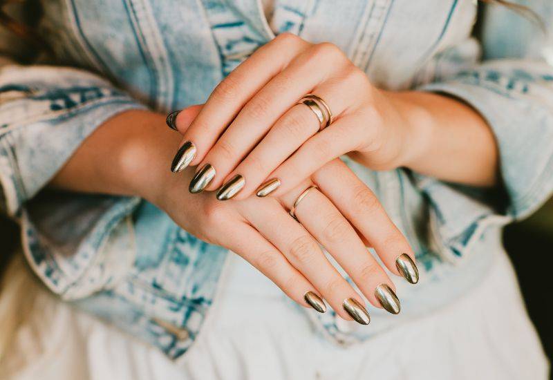 Среди модных тенденций маникюра на весну и лето 2024 года – хромированное покрытие. Платина в таком исполнении выглядит невероятно благородно. Кроме того, сияющий хром как нельзя лучше подходит девушкам, предпочитающим стиль вамп.