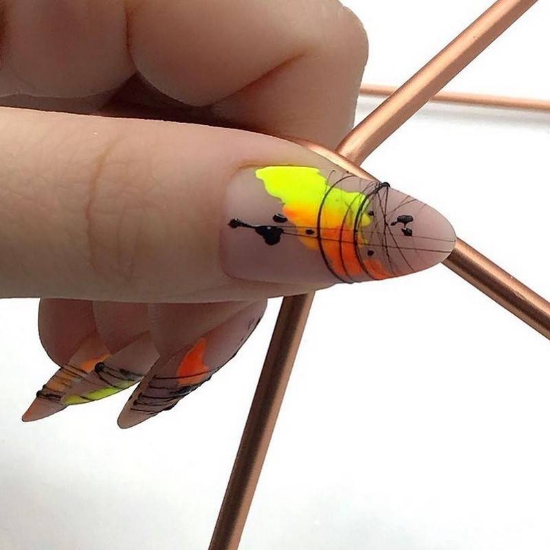 Отличаясь ярким внешним видом, такой элемент декора может стать отличным решением для тех, кто находится в поисках нестандартных решений. Он может сочетаться с другими цветами или находиться в единой цветовой гамме с прочими ногтями.