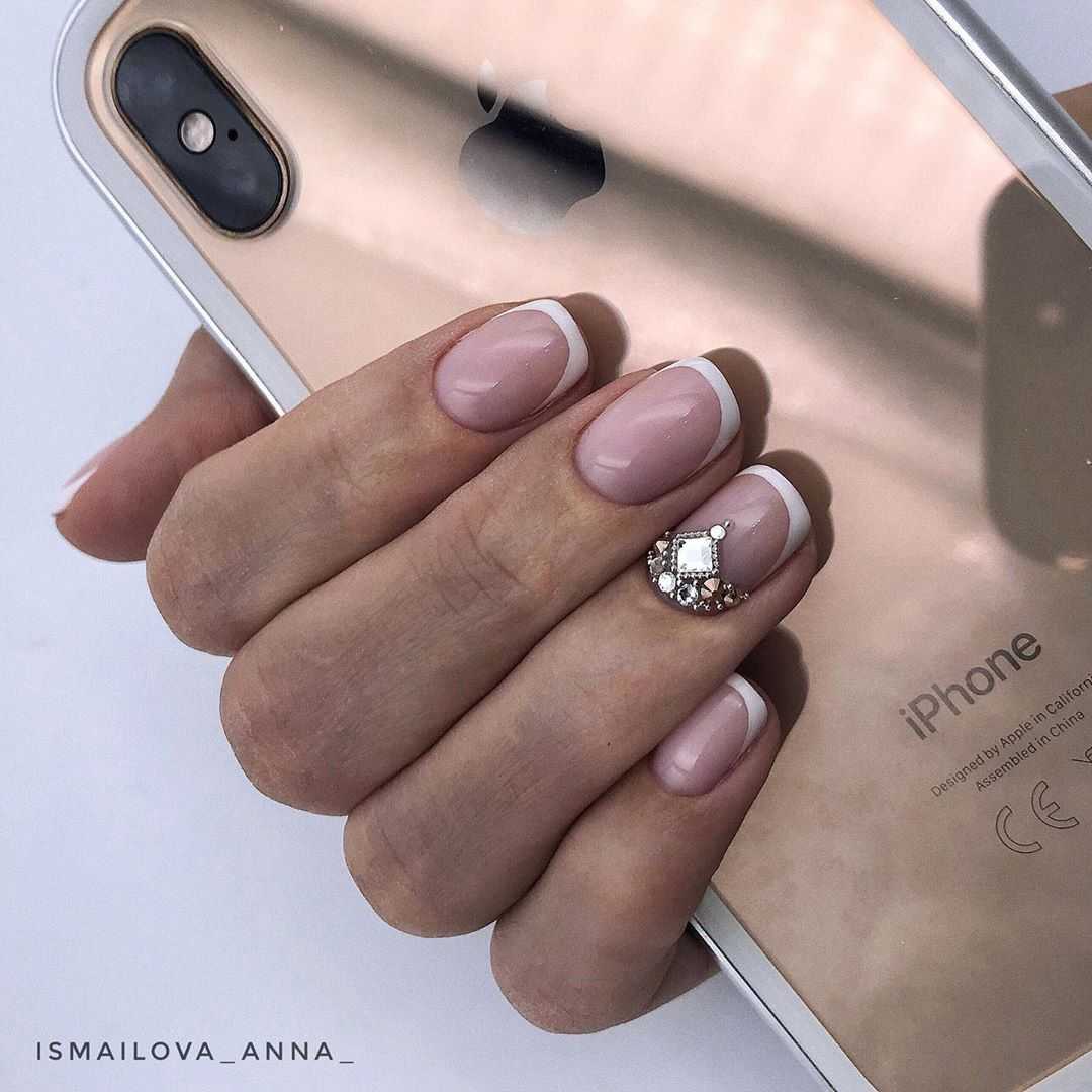 Нежные идеи дизайнов коротких ногтей с нюдовым маникюром со стразами и блесками