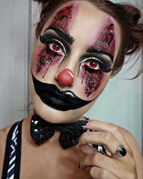 В этом году настоящим хитом будет макияж на Хэллоуин с нарисованными костями, выглядывающими зубами, ранами и порванной кожей. Такие варианты нагонят ужас на всех окружающих и без труда помогут создать самый жуткий . Особой популярностью среди макияжа на Хэллоуин 2017 года пользуются и образы страшных клоунов с огромными улыбками и пугающими глазами. Почему бы не побыть таким персонажем в самую страшную ночь года?