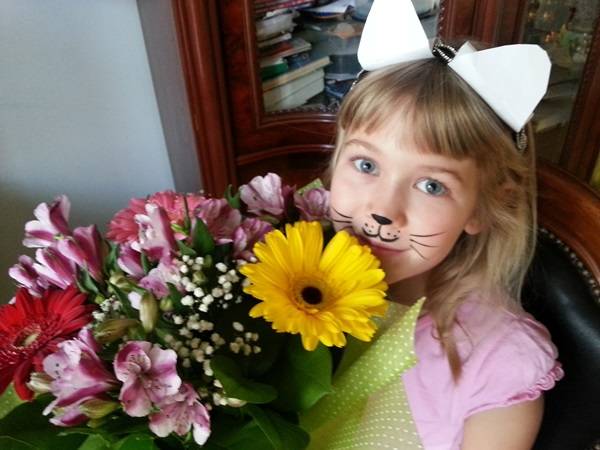 Самый простой детский макияж – нарисовать на лице ребенка носик и усы кошки. Для этого воспользуйтесь аквагримом – он не вызывает аллергии. Последовательность шагов по созданию образа милого животного следующая: