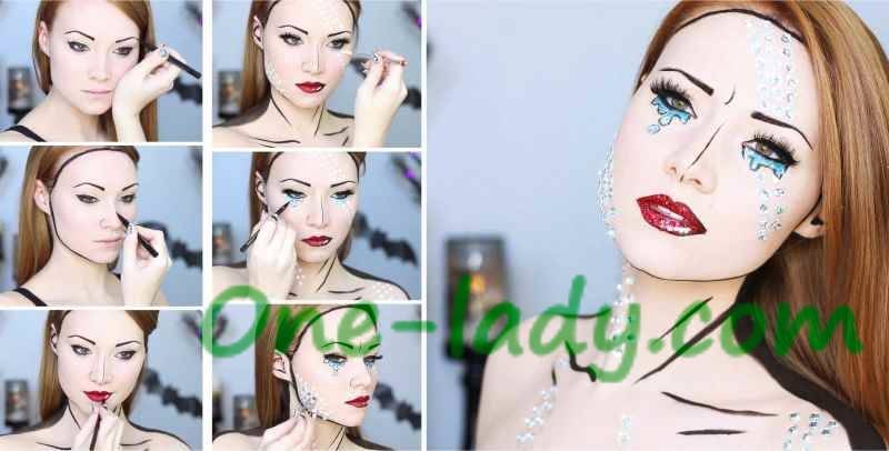 Как видно, такой очаровательный и необычный makeup на Хэллоуин совсем несложно сделать своими руками. Если немного постараться и следовать инструкциям, то все обязательно получится!