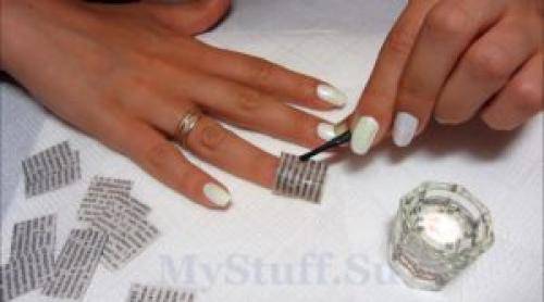 Тщательно обработайте ногти и нарежьте кусочки газеты по аналогии с описанным выше способом.