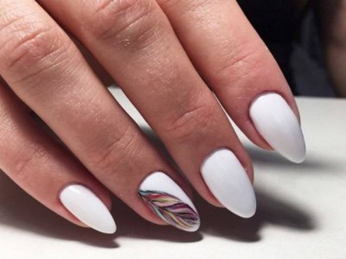 Основой для такого острого маникюра служит овальная форма. Ногтю придают форму ядра миндального ореха. Это самая мягкая и модная вариация. Мастеру достаточно только спилить немного кончик. Этого будет достаточно. Многие скажут — а где же здесь острые ногти? Но именно таков нынешний тренд.