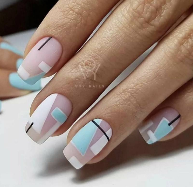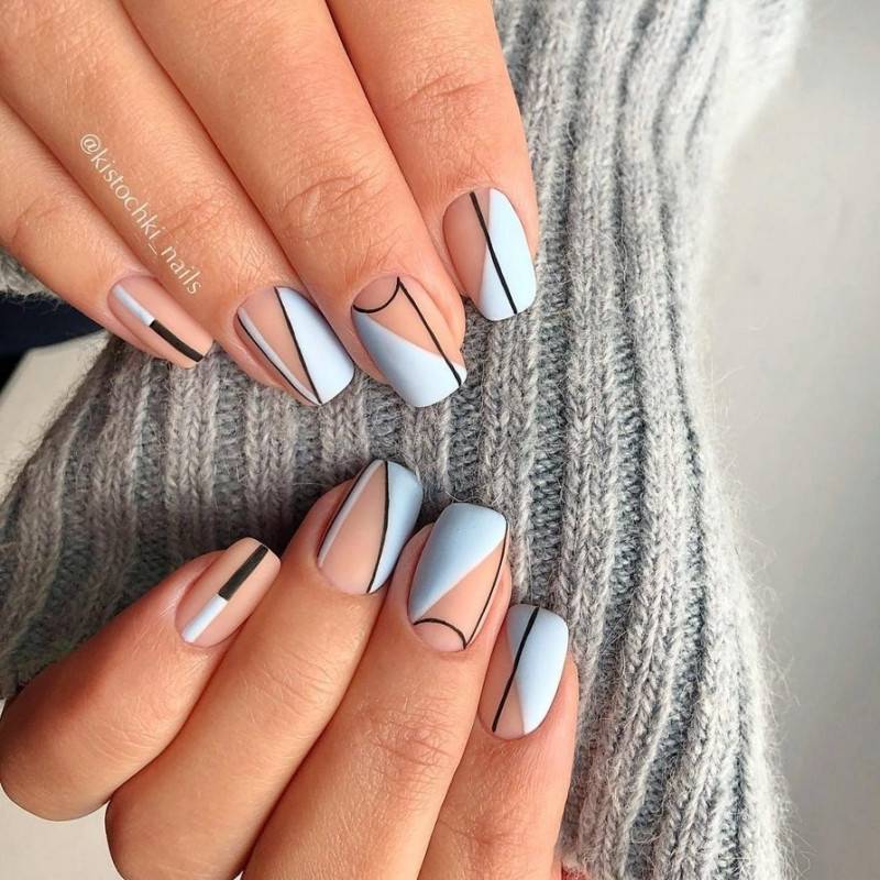 Маникюр с рисунком всегда выглядит стильно и привлекает внимание. Геометрия – удачная тематика для декора
