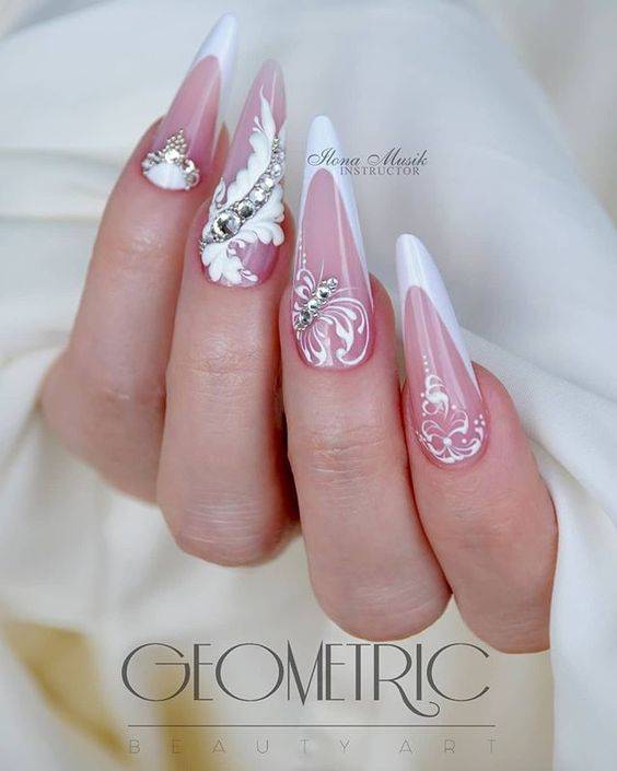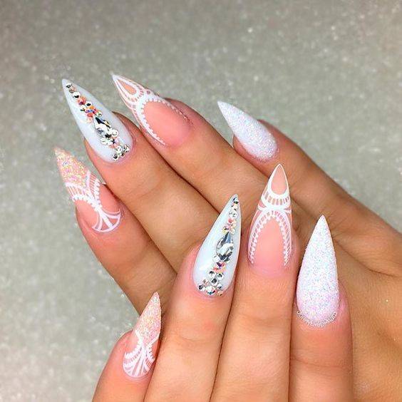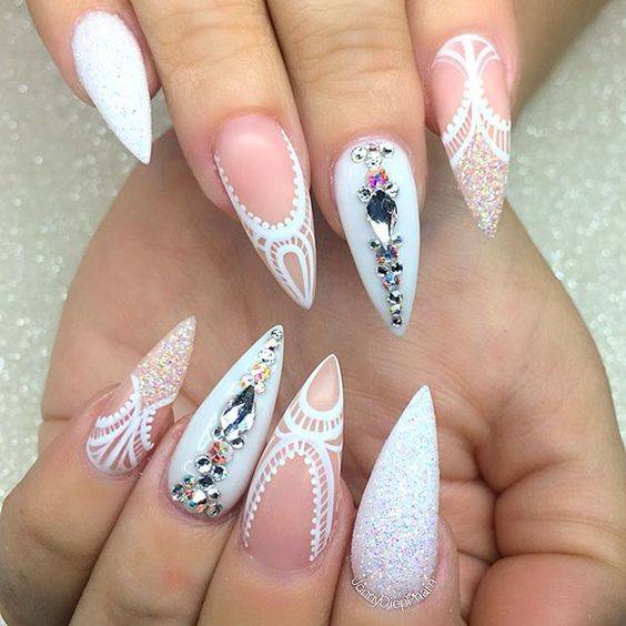 Что касается декора и прочих дополнений, то здесь можно отметить всевозможные виды страз, блёстки и рисунки в виде ажурного кружева, цветов, геометрических фигур и абстрактных мотивов.