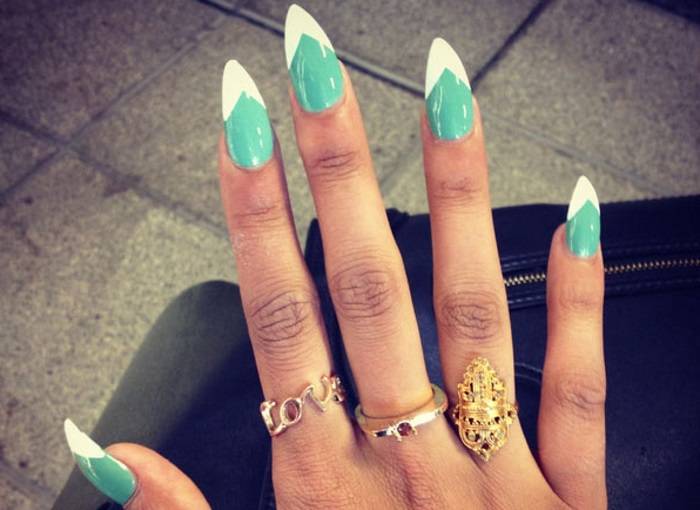 - кончик ногтя не должен быть слишком острым. Это особенность тренда, отличающая его от моды на странные ногти-стилеты. Во-первых это пошло. А во-вторых, велик риск травмироваться (или травмировать окружающих) острым кончиком. Кроме того, встречи с очень острым ногтем могут не пережить предметы одежды или вещи.