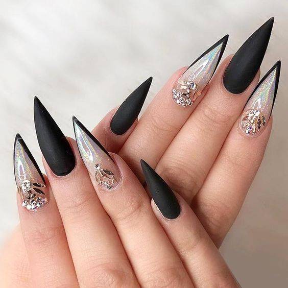 Кроме того, острые ногти могут быть украшены разнообразными узорами и элементами декора, что дополнительно подчеркивает индивидуальность и творческий подход владелицы.