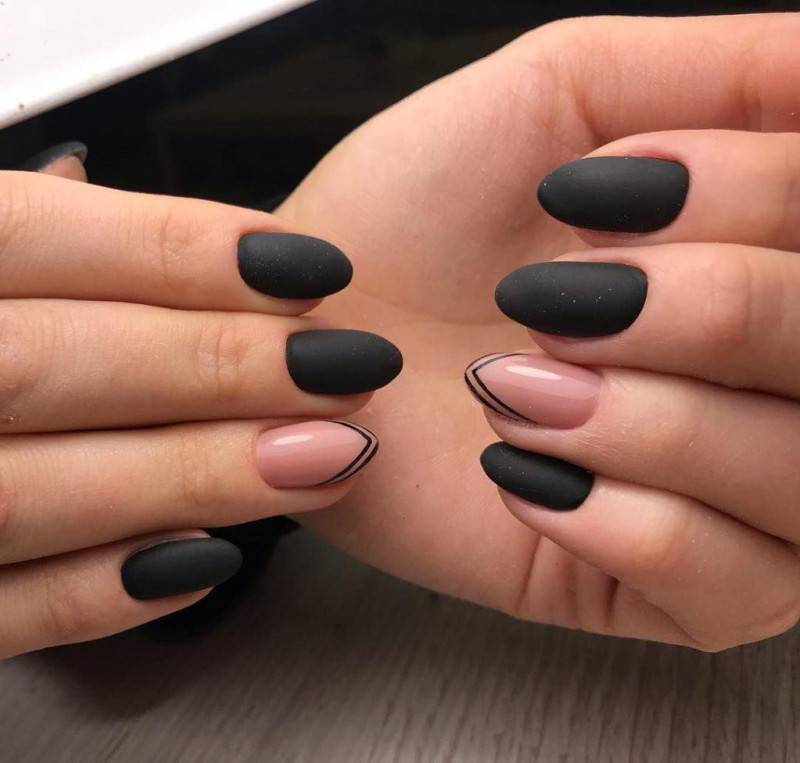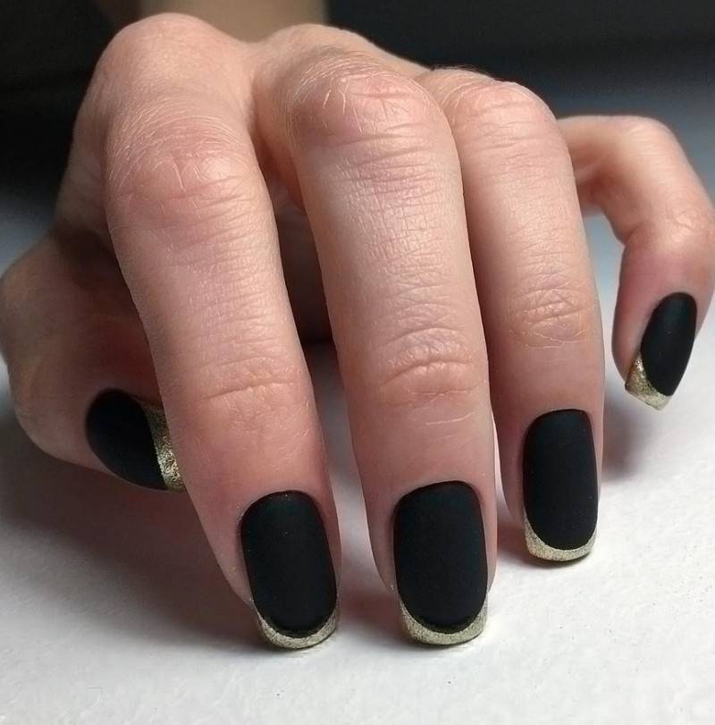 - Черный матовый маникюр – строго и со вкусом. Его можно сделать самостоятельно, создав матовый эффект при помощи пара или используя специальный лак.