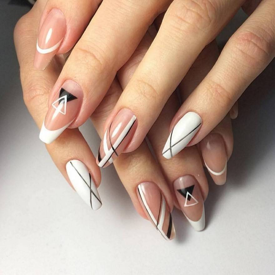 Черно-белый маникюр на длинные ногти: фото-новинки сезона 2021-2022