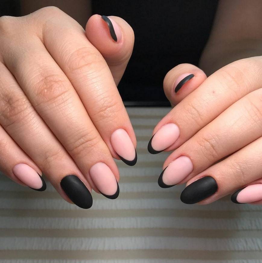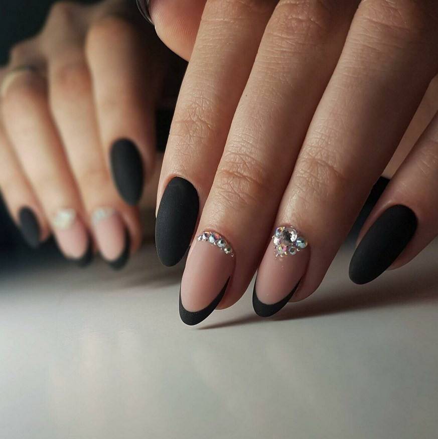 - Черный матовый маникюр – строго и со вкусом. Его можно сделать самостоятельно, создав матовый эффект при помощи пара или используя специальный лак.