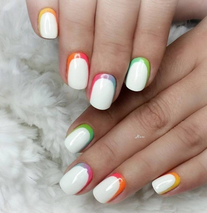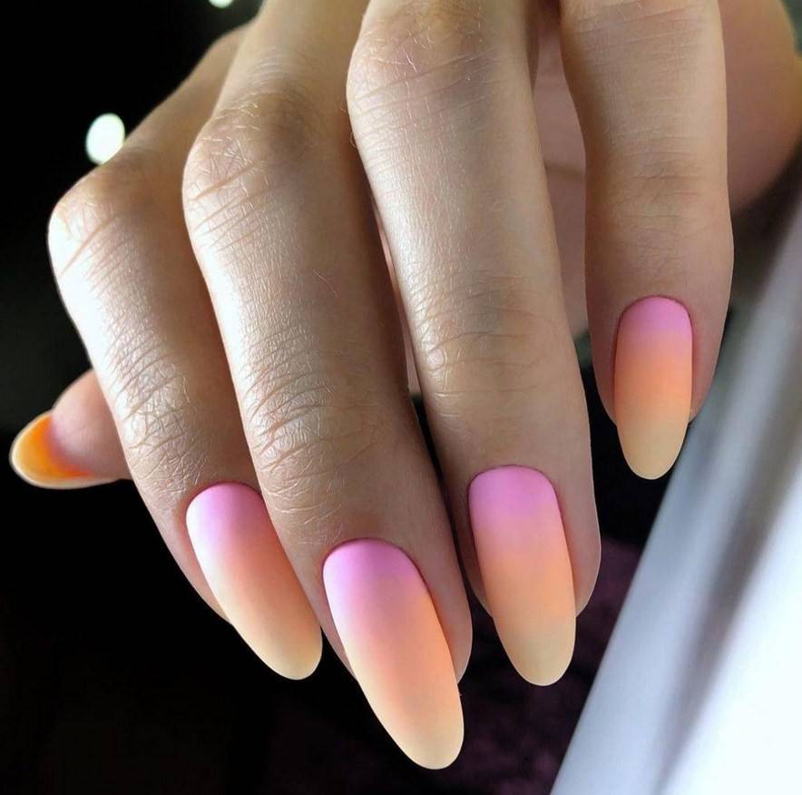 Актуальны пастельные, насыщенные и неоновые оттенки лаков. Попробуйте практичные сочетания. Например, градиент или омбре с нюдовым покрытием у ногтевого ложа. Благодаря простому приему отрастающая часть станет незаметной для окружающих.