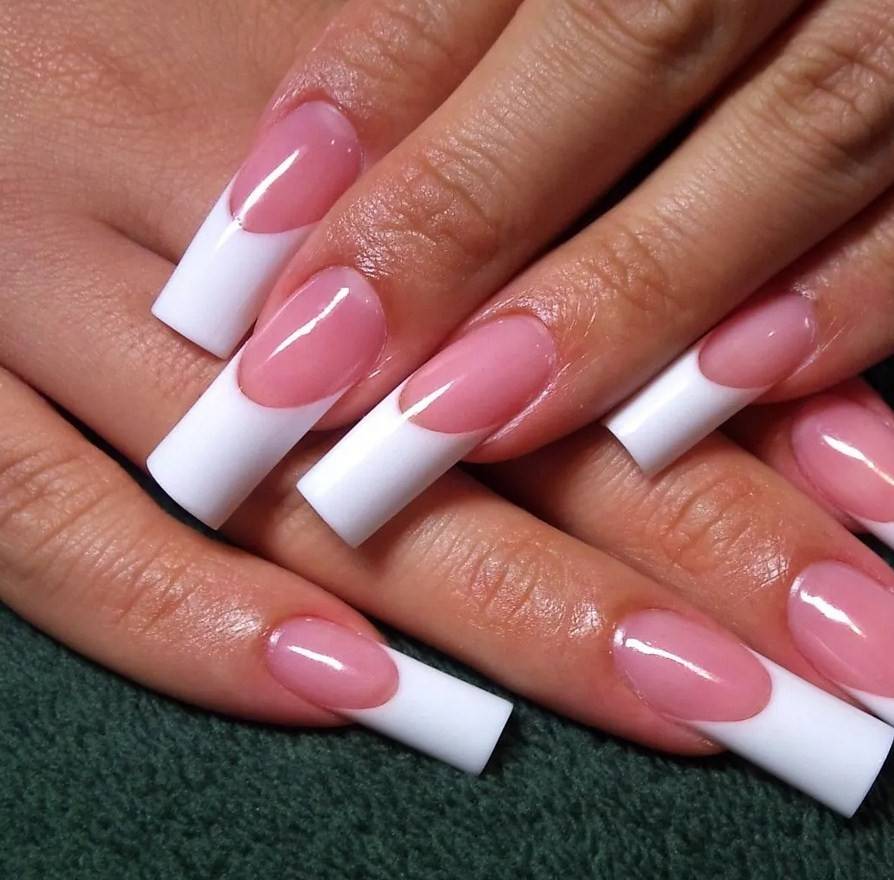 И на сегодняшний день существует масса вариантов дизайна френча на длинных и очень длинных ногтях. Однозначно, что такой маникюр выглядит стильно и смело. Выбирая вариант френча на очень длинные ногти, обязательно продумайте образ, так как маникюр должен дополнять лук, а не выбиваться из него. К тому же, каким будет маникюр – ярким, длинным или же наоборот нежным и неброским, решать только вам.