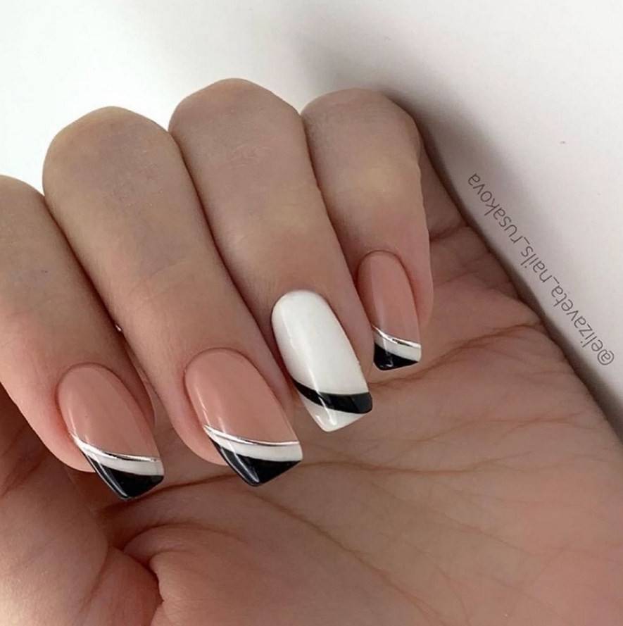 Короткие черно-белые ногти: фото-идеи сочетания черного и белого 2021-2022