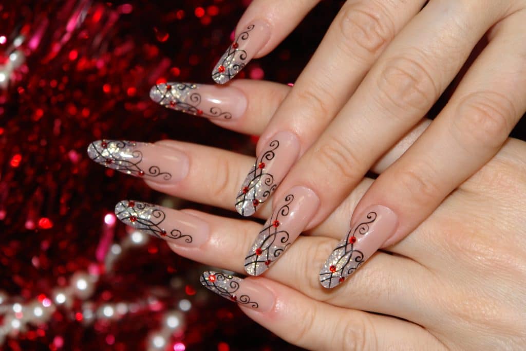 Что касается декора и прочих дополнений, то здесь можно отметить всевозможные виды страз, блёстки и рисунки в виде ажурного кружева, цветов, геометрических фигур и абстрактных мотивов.