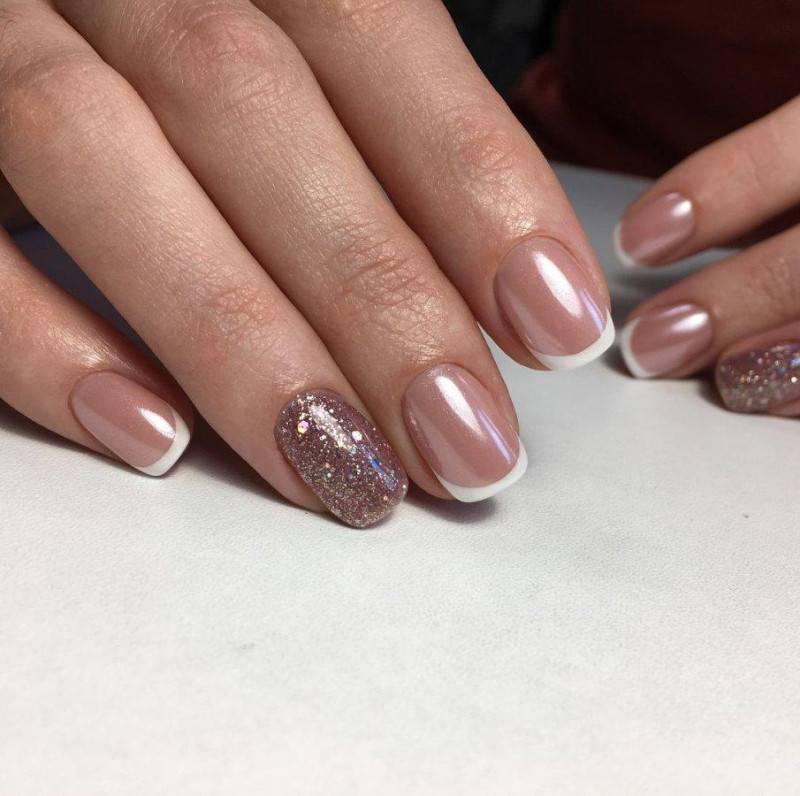 Такой маникюр тоже хорошо подойдёт будущей невесте. Ноготки будто покрывают хрусталём, в котором содержатся маленькие блестящие крупинки. Короче, это очень красиво!