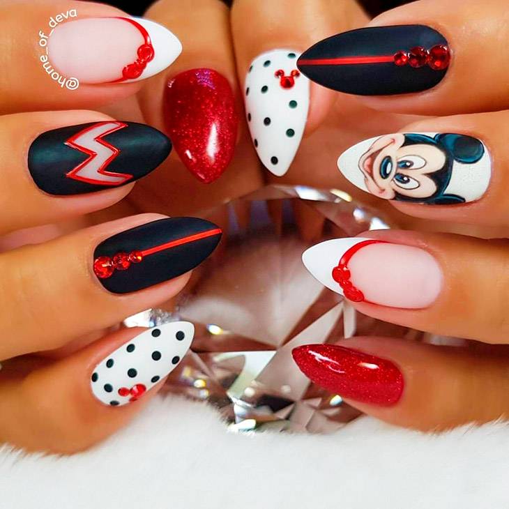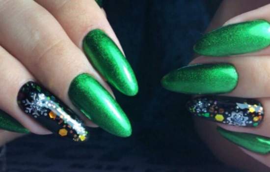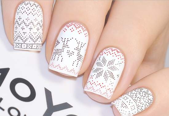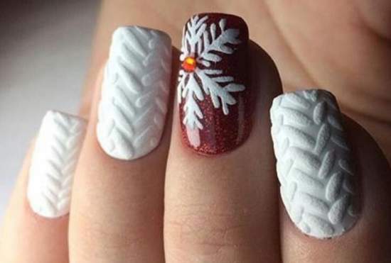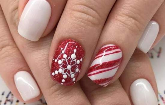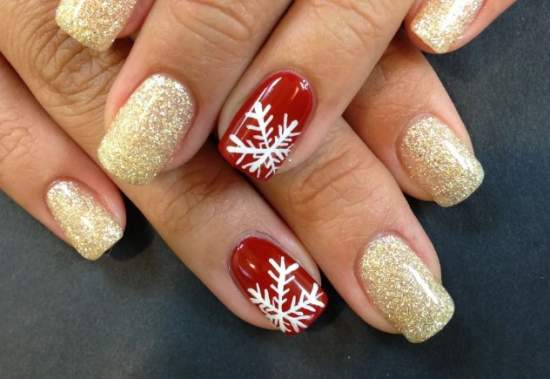 Чтобы сделать оригинальное оформление в этом году, дополните его красным. Это достаточно рискованное и смелое решение, но, если маникюр выглядит аккуратно, результат непременно вас порадует. Идея с алым весьма дерзка и больше подойдет для выхода в свет.