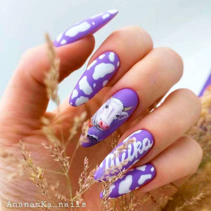 Свежее, холодное, но при этом мягкое сочетание оттенков получите, если выберите сочетание с синим оттенком. Идеально для длинных ногтей, но может не менее эффектно смотреться и на коротких ноготочках. По желанию добавьте немного страз или глиттера.