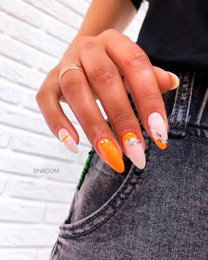 В качестве оригинальных украшений используйте акриловые цветы, бусинки, камни. Для шика и блеска — стразы и блестки. Свежо смотрятся золотые, бронзовые и металлические оттенки на кончиках ногтей. Эффектно будет смотреться белоснежно мраморное решение.