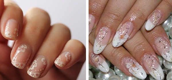 Часто для украшения ногтей невесты используется кружево или его имитация. Рисунки в виде кружева являются одним из беспроигрышных вариантов свадебного дизайна.
