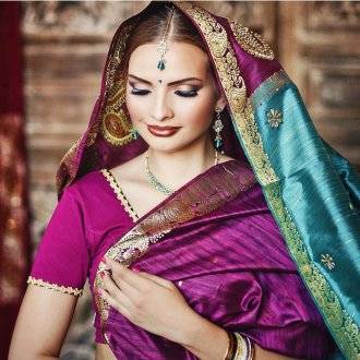 Впрочем, блондинки могут тоже примерить образ индианки, нужно только очень осторожно подобрать цвета. Следует помнить о том, что наши славянские черты лица заметно отличаются от характерных черт индийских девушек