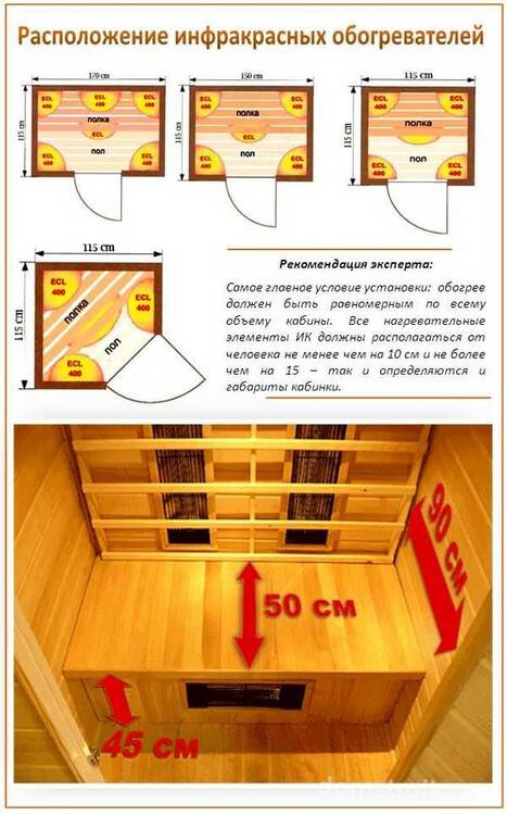 Излучатели выбирают на основании технических параметров кабины – материала, габаритов и конструкции.