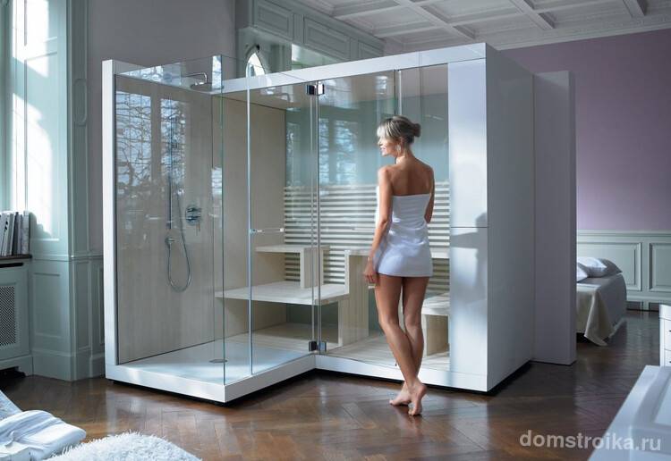 Крупногабаритные кабинки (для одновременного посещения четырех и более человек) с размерами 1500×1500 мм, требующие больше места, идеально подойдут для владельцев собственной недвижимости или хозяев больших, просторных квартир.