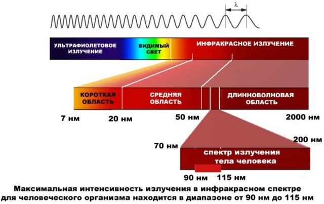 Длинные волны – самые безопасные и комфортные, и это объяснимо тем, что человеческое тело способно выделять тепловое излучение в длинноволновом диапазоне от 65 до 200 мкм. Длинные волны обеспечивают глубокое проникновение и прогрев всего организма.