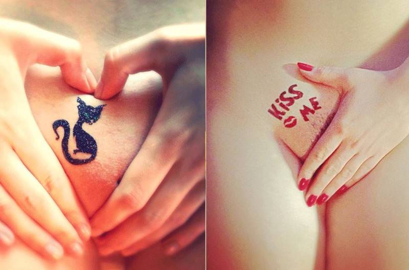 Какой бывает бикини-дизайн? Художественное оформление зоны бикини делают и при наличии волос, и при их отсутствии. Можно сделать блеск-тату, временные татуировки, аэротату, ваджазлинг (украшение кристаллами), расписать хной кожу.