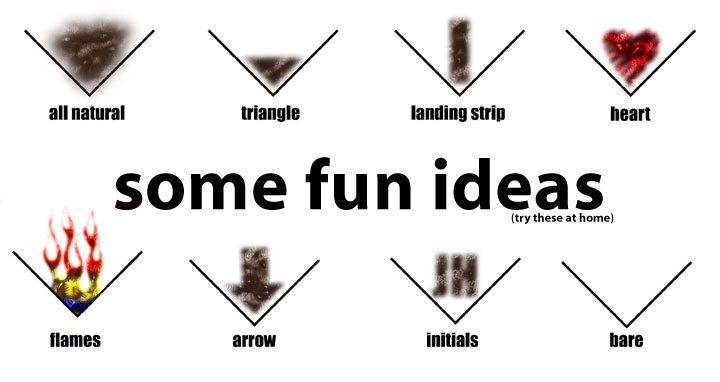 Если вы решили, что прическе в вашей деликатной «треугольной зоне»- быть, выбор рисунка– один из ключевых моментов процедуры. В качестве первого опыта не выбирайте слишком причудливые рисунки. Хотя большинству мужчин и нравятся интимные стрижки, не каждый оценит разноцветную новогоднюю елку или хвост павлина. Если это ваш первый опыт, ограничьтесь чем-то попроще. Можно начать с тонкой полоски или треугольника. Такой рисунок легко выполнить самой себе в домашних условиях, и сразу отпадает вопрос стеснения в кабинете мастера.