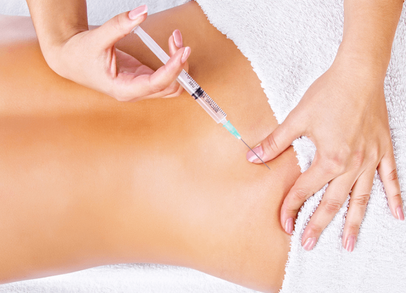 - Специальной иглой препараты вводятся в подкожную жировую клетчатку.