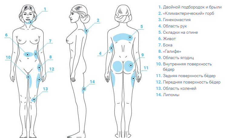 Подойдет процедура и девушкам, которые довольны своим далеким от модельных стандартов телом, но хотят избавиться от конкретного дефекта – например, «лишнего» подбородка, области «галифе» на бедрах или валика в нижней части живота.