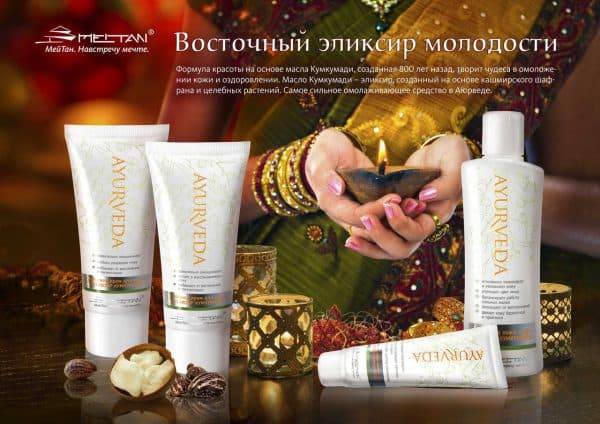Основа индийских косметических средств – аюверда. Это Нетрадиционная медицина с древних веков. Она обладает высокой силой и распространена только на территории страны. Все ухаживающие и косметические средства – в первую очередь лечат кожные покровы. Компоненты – много растительных веществ из индийской культуры.