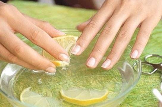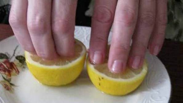 1. Разделить лимон на две части и воткнуть ногти рук в мякоть лимона на 10-15 минут.