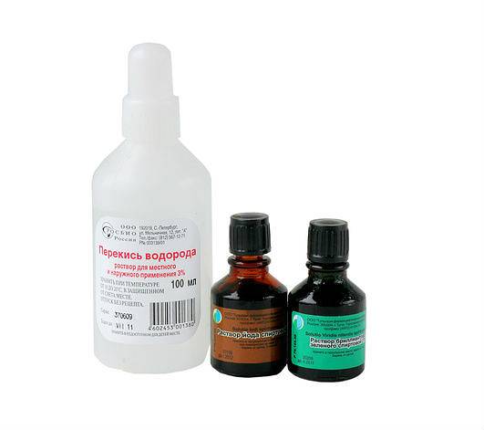 - После кожу, ногти и зоны между пальцами тщательно вытирают и обрабатывают перекисью водорода.