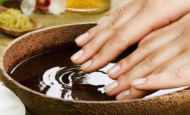 Очень важно при проведении данной процедуры следить, чтобы ногти были полностью покрыты водой. Время одной такой процедуры должно составлять 15 минут