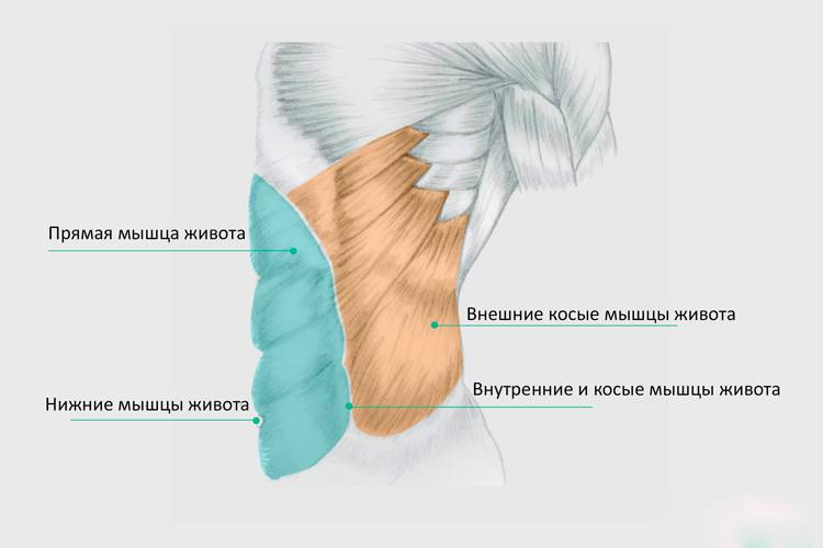 Прямая мышца живота: наиболее известная мышца живота («шесть кубиков»). Она помогает поддерживать позвоночник и спину во время ежедневной деятельности, например, во время сгибания или при подъеме чего-либо с земли. Для тренировки подходят скручивания.