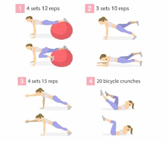 Составьте индивидуальную программу тренировок. И тут многое зависит от вашей физической подготовки и изначального веса. Если лишним весом вы не страдаете, то программа тренировок будет стандартной (разогрев – прокачка пресса-восстановление). Но если вы мечтаете сбросить пару тройку лишних килограмм, включите в программу кардио упражнения (бег, быстрая ходьба, плавание). Пейте больше воды. Суточная норма жидкости составляет 2-2,5 литра
