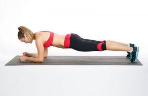 Первое упражнение достаточно простое – это банальная планка на локтях. Она не только сделает прекрасным ваши животик, а также уберет неприятные ощущения в спине, в целом укрепит мышцы, сделает красивым все тело. Такая же планка, но боковая, прекрасно тренирует ягодицы.