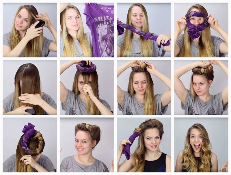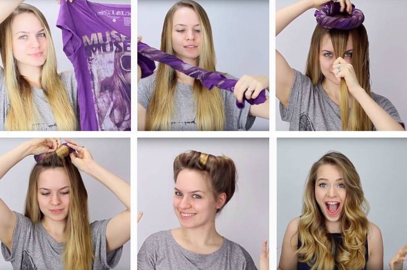 Помните, что самое главное – закручивать пряди максимально аккуратно вокруг ткани, чтоб наутро волосы были гладкими, не путались и не пушились. Воспользовавшись этой инструкцией, можно добиться упругих ярко выраженных кудрей. Кудри с помощью футболки можно сделать тремя очень простыми и быстрыми способами. Рассмотрим каждый из них.