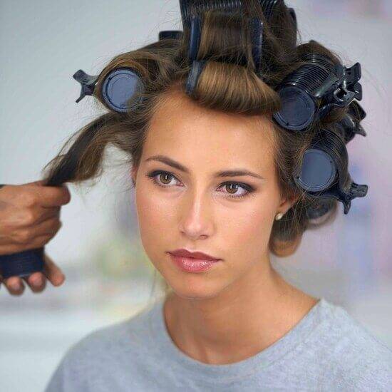 После полного просушивания снять бигуди и зафиксировать получившуюся укладку аэрозольным лаком.