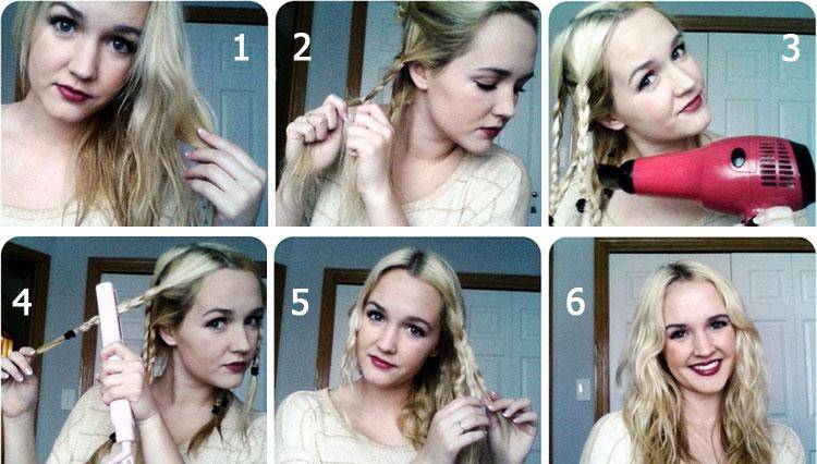 Этот метод чем-то схож с предыдущим, только в процессе укладки нет необходимости в дополнительных средствах, таких как тряпочки. С помощью простых, казалось бы, косичек можно добиться потрясающей укладки, которую не так-то просто сделать с помощью утюжка или плойки.