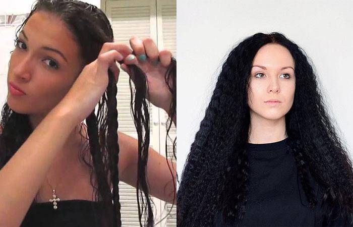 - оставить волосы сохнуть заплетенными на 6-8 часов. Можно оставить на всю ночь. Затем косы расплести и все хорошо расчесать.