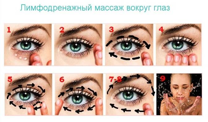 - Такая процедура, как лимфодренаж может помочь провести экстренный отток лимфы из области вокруг ваших глазок. Проводят его либо традиционным ручным способом, либо же специальным аппаратом, причем чаще всего его делают на всю поверхность кожи лица, а в результате получается весьма завидный визуальный эффект свежести и молодости.