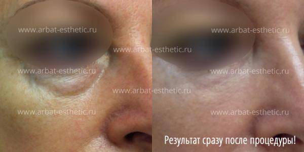 Понятно, что за один раз едва ли получится увидеть сколько-нибудь существенный результат, так как накопленные годами недосыпа мешки едва ли пожелают сдаваться совершенно без боя. Однако посещая салон регулярно, проведя процедур семь-двенадцать, в зависимости от эффективности процедур и личных особенностей организма вы точно увидите, как все меняется в лучшую сторону.